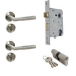 Get modern sophistication with cylinder security in this complete bundle. The brushed stainless steel knurled handle on rose with cylinder lock and cylinder brings textured contemporary elegance - perfect for modern properties requiring complete stainless steel cylinder hardware.
