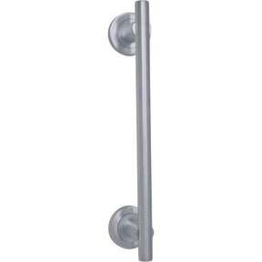 Modern pull handle made from solid brass material in a satin chrome finish.