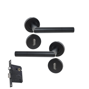 Enhance your doors with this sleek tubular handle set crafted from durable stainless steel and finished in a contemporary matt black. Each pair includes matching keyhole escutcheons and a SABS-approved two-lever lock, ensuring both style and security. Perfect for modern interiors, this handle set combines robust functionality with a refined look.
