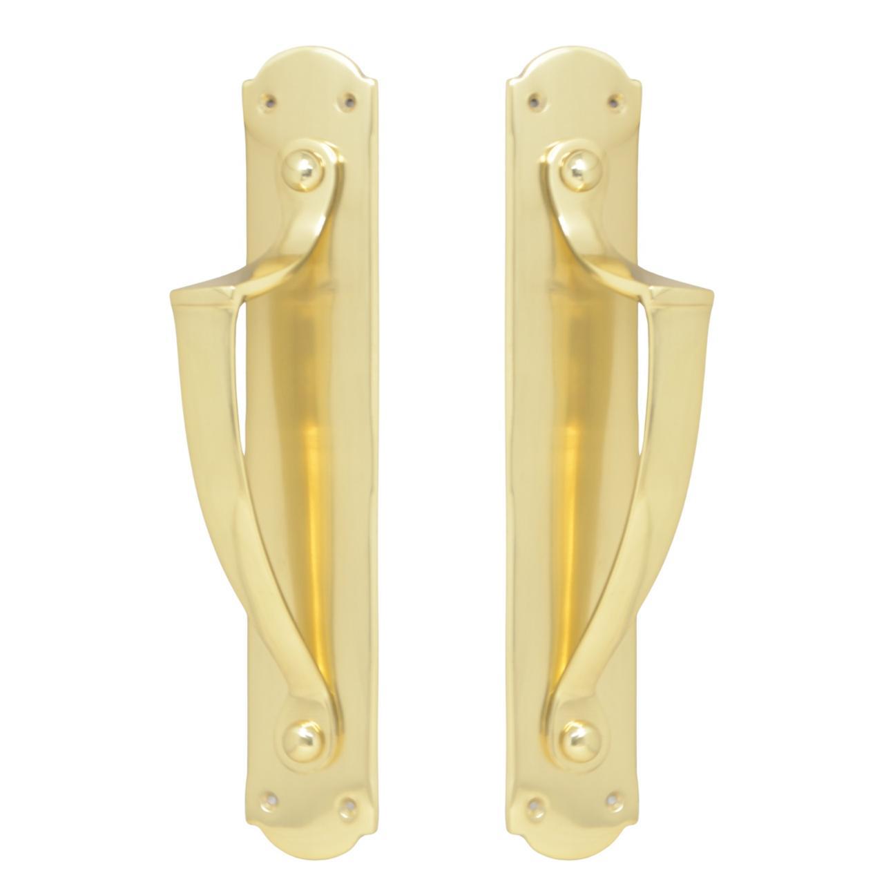 Enhance your doors with the Classic Door Handle on Plate in polished brass, crafted from solid brass for lasting durability and a timeless look. Perfect for entrances and passage doors, it offers both style and reliability. Each set includes a pair of handles and screws, making installation straightforward and convenient. Upgrade your home’s aesthetic with this elegant and sturdy door handle.