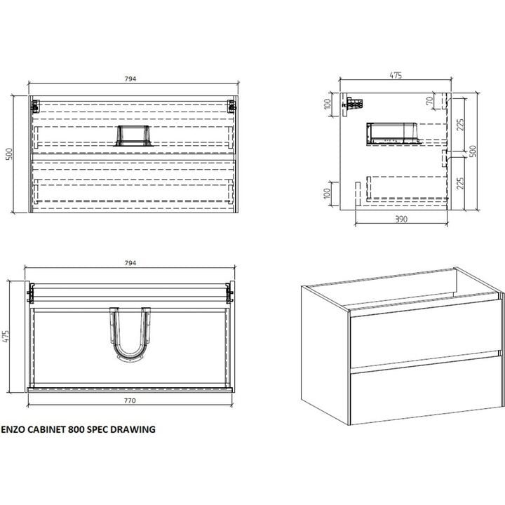 Enzo Vanity Cabinet 800 White with Basin