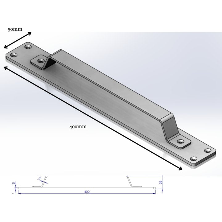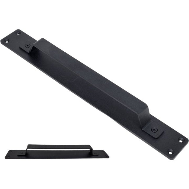Modern entrance door pull handle on plate black